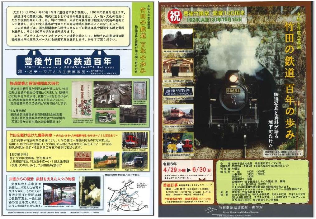 豊後竹田駅開業 100周年企画展のご案内 竹田高校昭和35年ご卒業の平手肇様から、豊後竹田駅開業100周年企画展に関する資料をお寄せいただきましたのでご案内します。