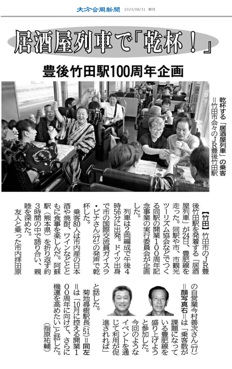 豊後竹田駅100周年企画 居酒屋列車 平手肇さん(昭和35年卒)より情報提供がありましたので共有します。