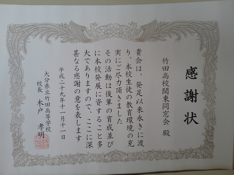 現状大分県立高等学校は53校まで減っていますが、竹田高等学校関東同窓会は歴史ある母校を誇りに思い、母校後輩の活躍を願い、母校発展に貢献していきたいと思います。
